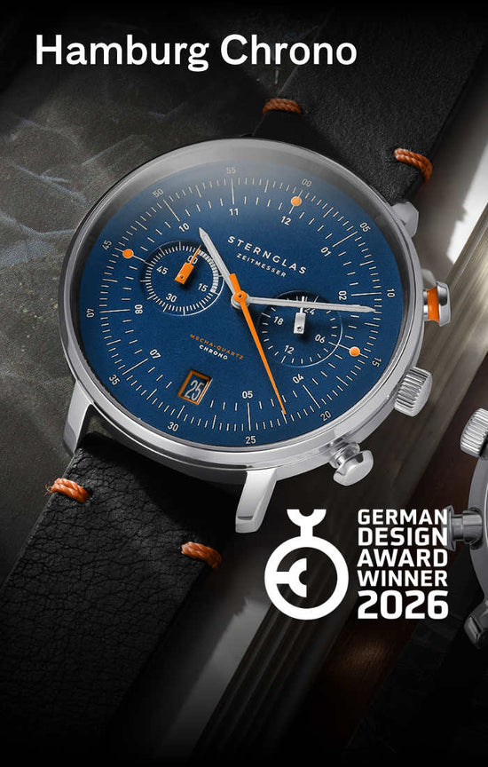 Der Hamburg Chrono Edition Küste wurde mit dem German Design Award 2026 ausgezeichnet. Sein maritimes Design, präzise Mecha-Quartz-Technik und die Gravur des Eissturmvogels machen ihn zu einem der beliebtesten Chronographen...