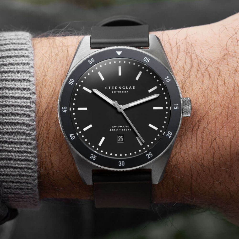 Alle STERNGLAS Uhren haben eine Wasserdichtigkeit von mindestens 5 ATM. -