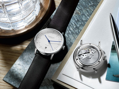 Darf es ein bisschen Farbe sein? Die Naos Edition Flora kommt in den Trendfarben Eisblau und Salbei. Besonders ist hier das farbige Zifferblatt passend zum hochwertigen Uhrenarmband aus Kalbsleder. In Übereinstimmung mit dem floralen Design ist die Uhrenrückseite der Sonderedition mit einer feinen Gravur verziert.