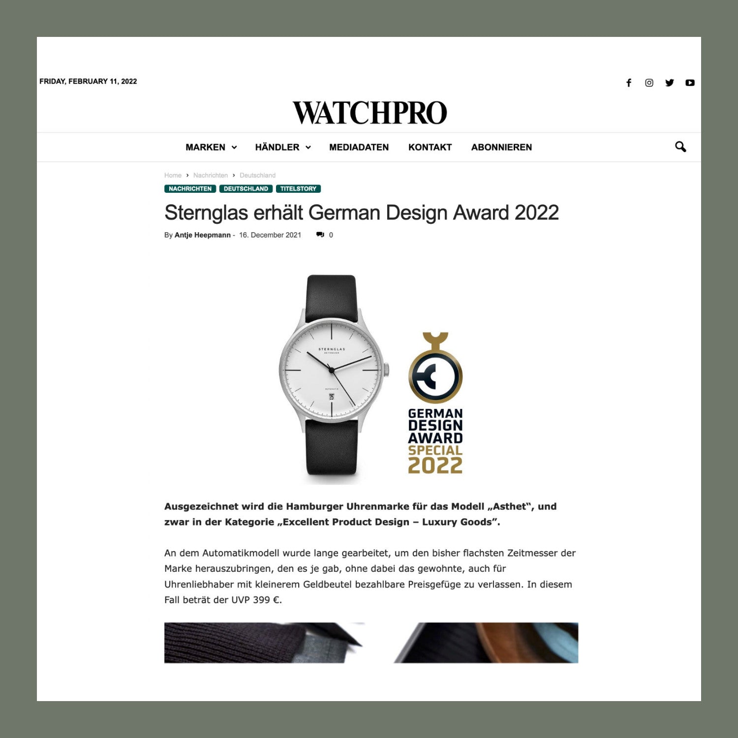 Ausgezeichnet wird die Hamburger Uhrenmarke für das Modell „Asthet“, und zwar in der Kategorie „Excellent Product Design – Luxury Goods”.