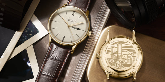 Für eine Wasserdichtigkeit von bis zu 5 ATM sorgt der präzise verschraubte Gehäuseboden mit einer Gravur des Berliner Bahnhofs. Nach seinem Bau 1857 stellte er für 46 Jahre die westlichste Endhaltestelle der Bahnverbindung zwischen Hamburg und Berlin dar.