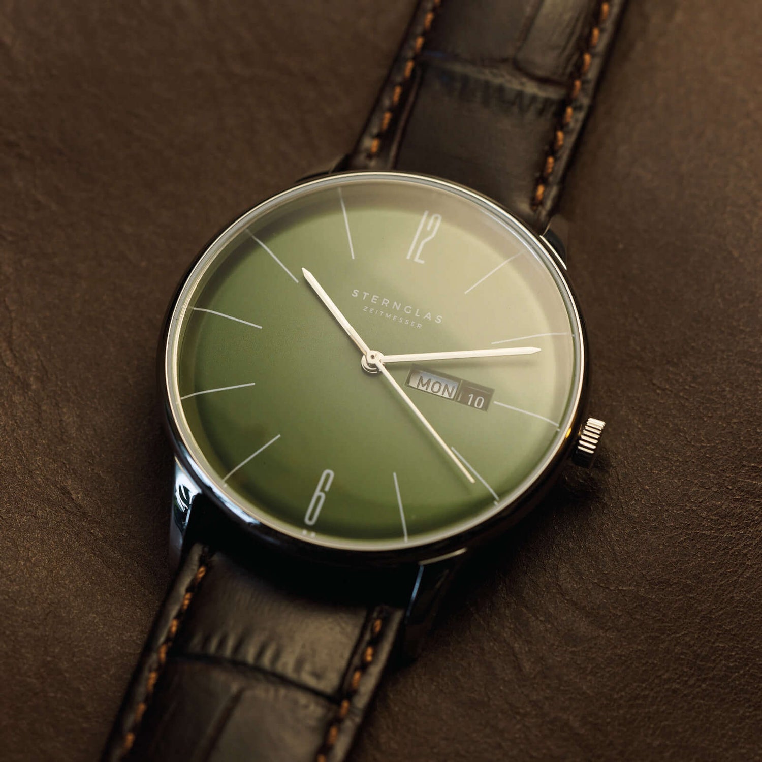 Zifferblatt olivgrün-satiniert, gewölbt
