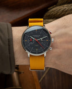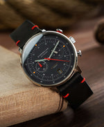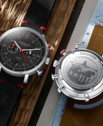 Die auf 1.999 Exemplare limitierte Sonderedition mit zuverlässigem Mecha-Quartz Uhrwerk besticht durch eine maritime Ästhetik. Das satinierte Zifferblatt des 42 mm-Zeitmessers ist sturmgrau und erinnert an die raue Nordsee.
