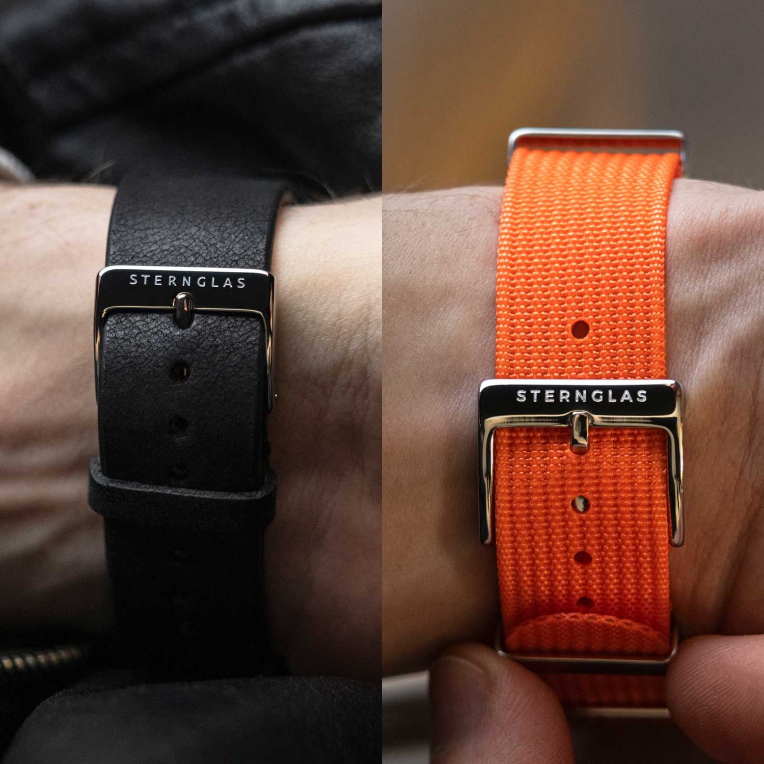 | Armband | Field 20 signalorange silber; Vintage 20 nero silber, echtes Rindsleder |