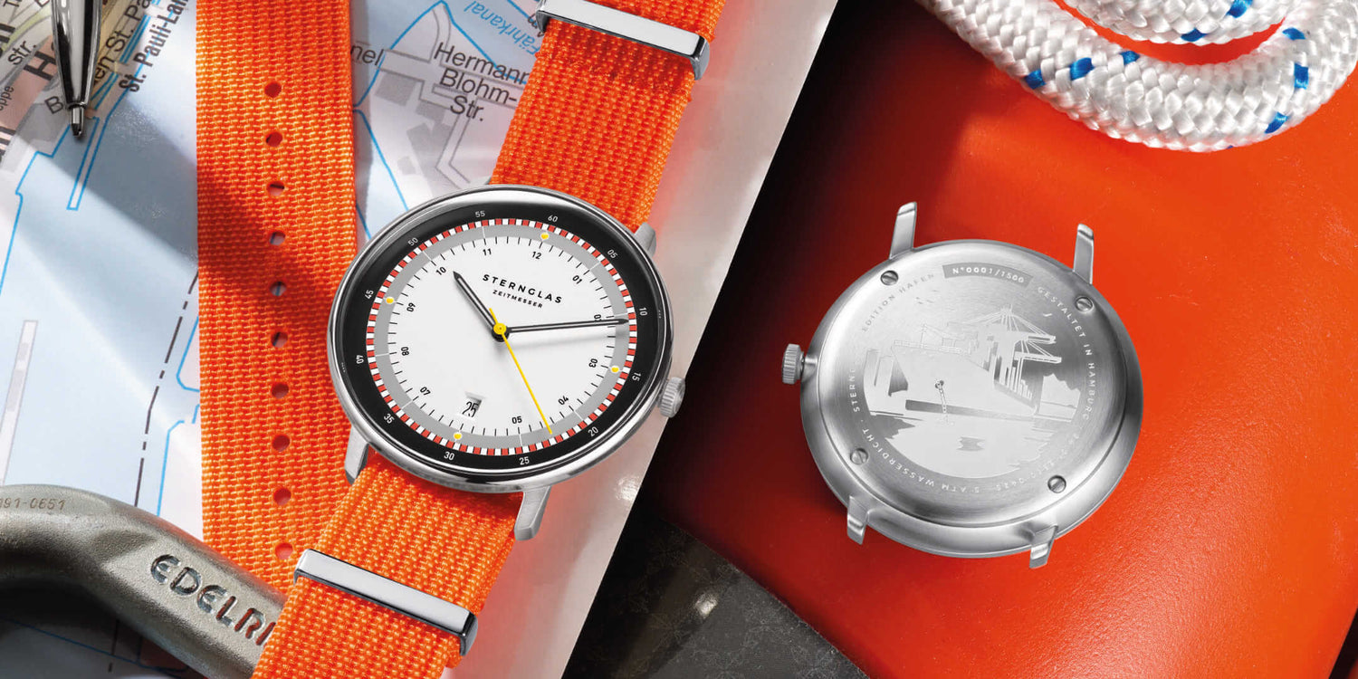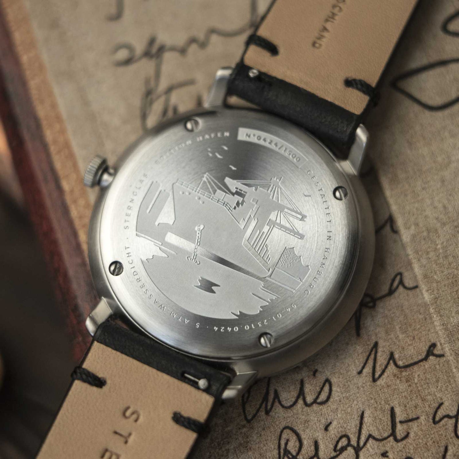 Ein Stück Hamburg für Dein Handgelenk. Die Sonderedition Hafen ist auf 1.500 Exemplare limitiert. Luminova auf den Zeigern sorgt für optimale Lesbarkeit – auch bei schlechten Lichtverhältnissen. Ein Zeitmesser, so präzise wie Ebbe und Flut.