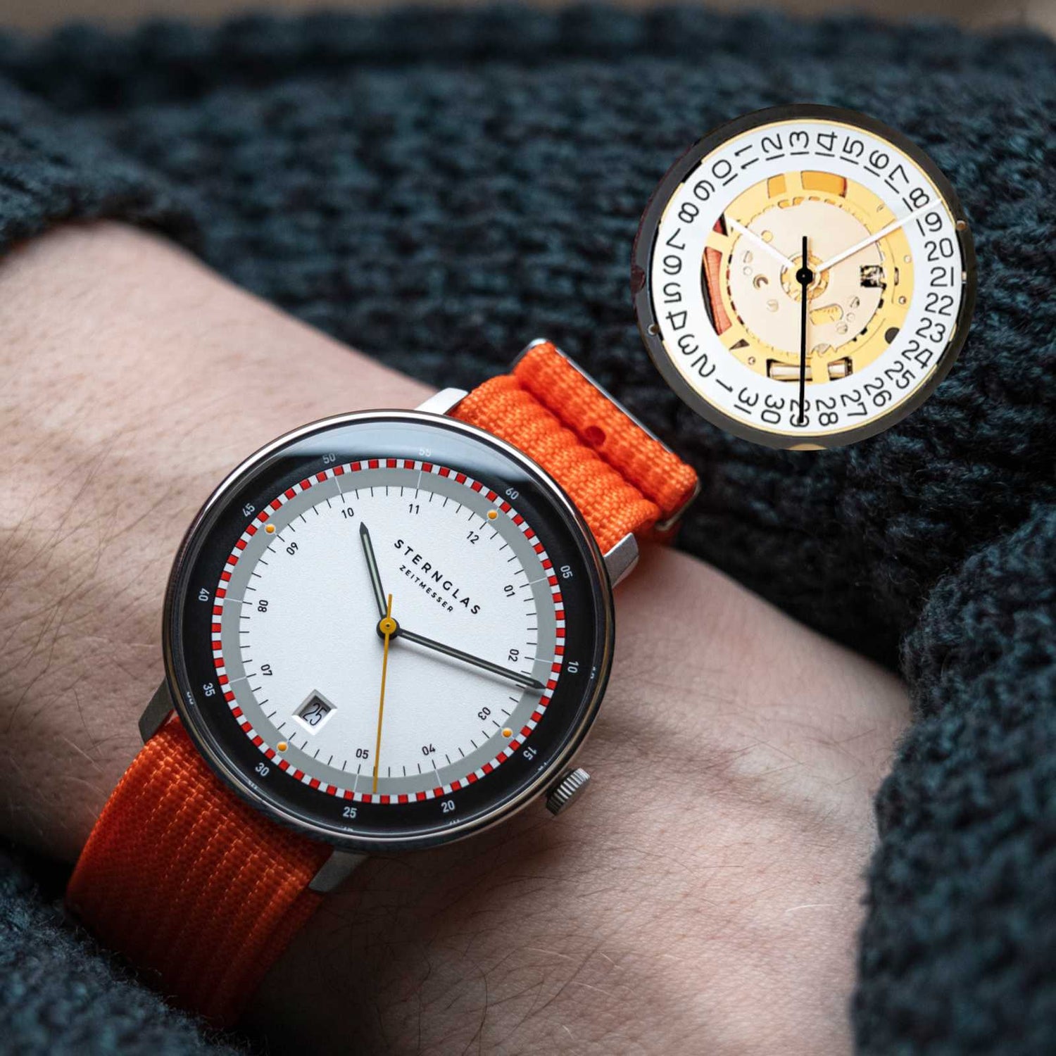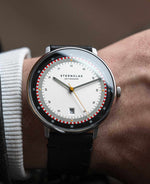 | Zifferblatt | weiß, grau, rot, anthrazit (satiniert und gewölbt) |