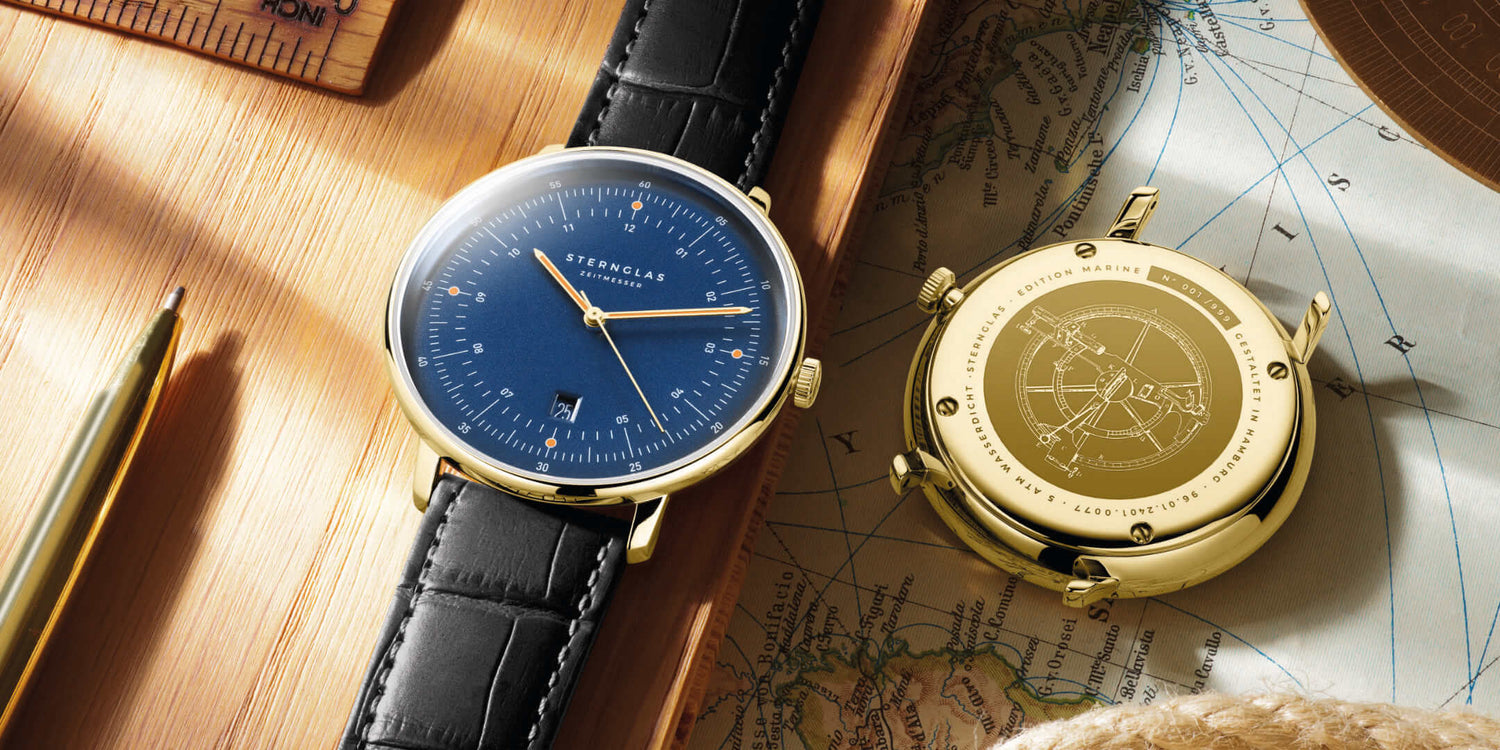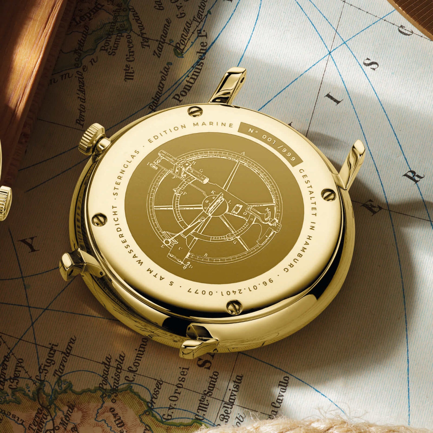 Vintage-Flair inspiriert von klassischen Marineuniformen. Unsere erste Hamburg mit goldenem Gehäuse. Limitiert auf 999 Exemplare. Die perfekte Uhr für den Alltag mit 42mm Durchmesser und kratzfestem Saphirglas.