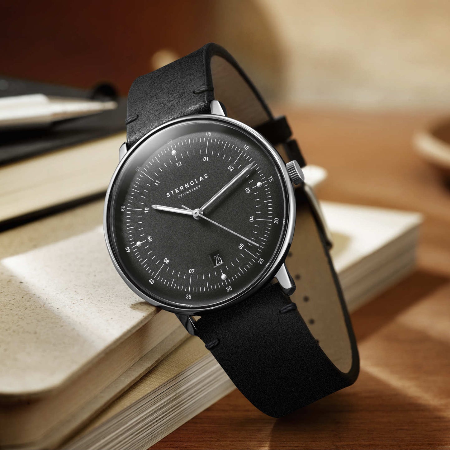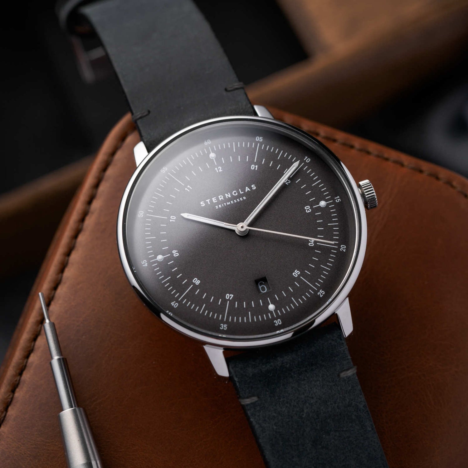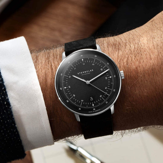 Wir verwenden für unsere Zeitmesser ausschließlich Saphirglas. Das Uhrenglas findet man sonst insbesondere im Luxusuhren-Markt.