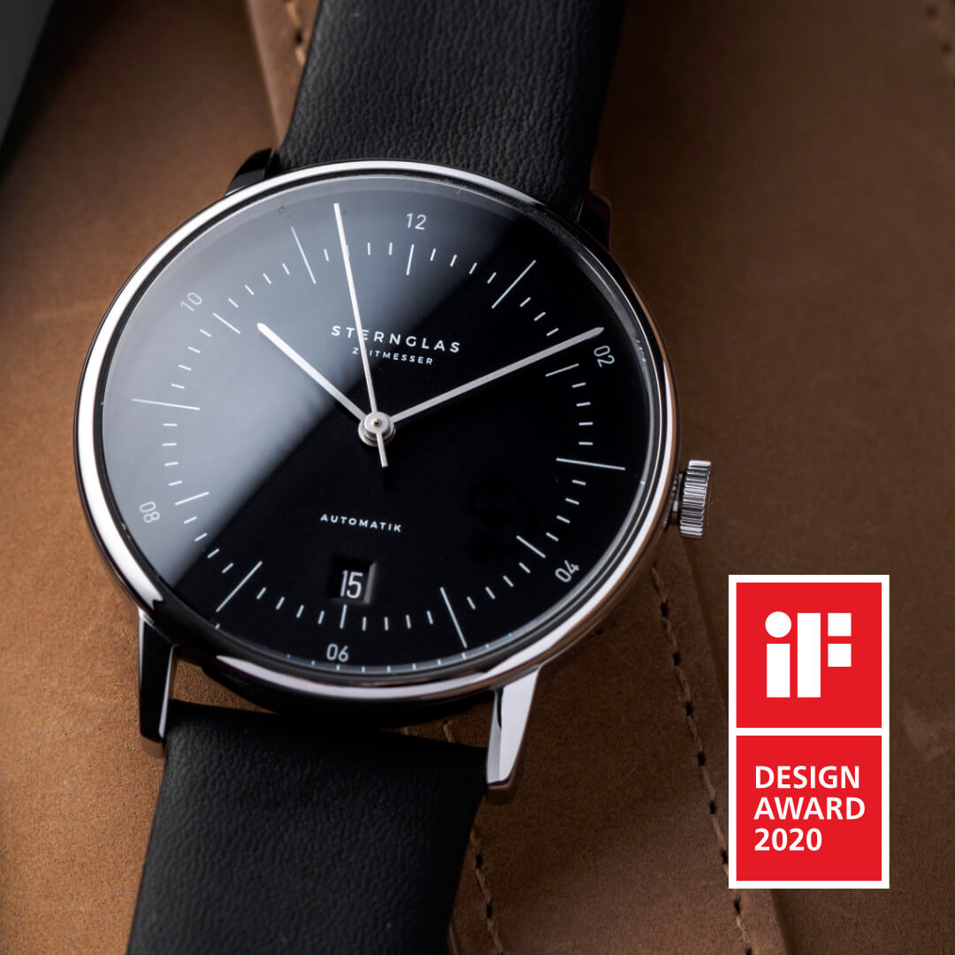 Bauhaus-Klassik für Technikliebhaber. Das minimalistische Design und der Sichtboden mit Blick ins Werk lässt keine Wünsche offen. Das kratzfeste Saphirglas und samtweiche Kalbslederarmband runden den Anspruch ab.