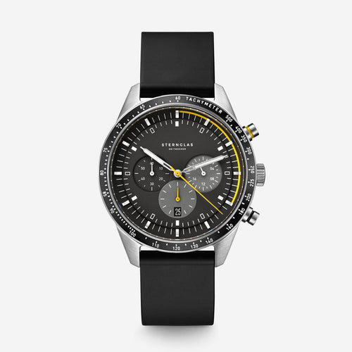 Unser Kautschukband ist aus einem Guss hochwertigem Flurokautschuk gefertigt. Strapazierfähig, robust und angenehm in der Haptik. Die strukturierte Rückseite verhindet zudem ein Anhaften an der Haut. Perfekt für alle, die es klassisch und unkompliziert wollen. Dank Schnellwechselsytsem ist ein müheloser Wechsel möglich.