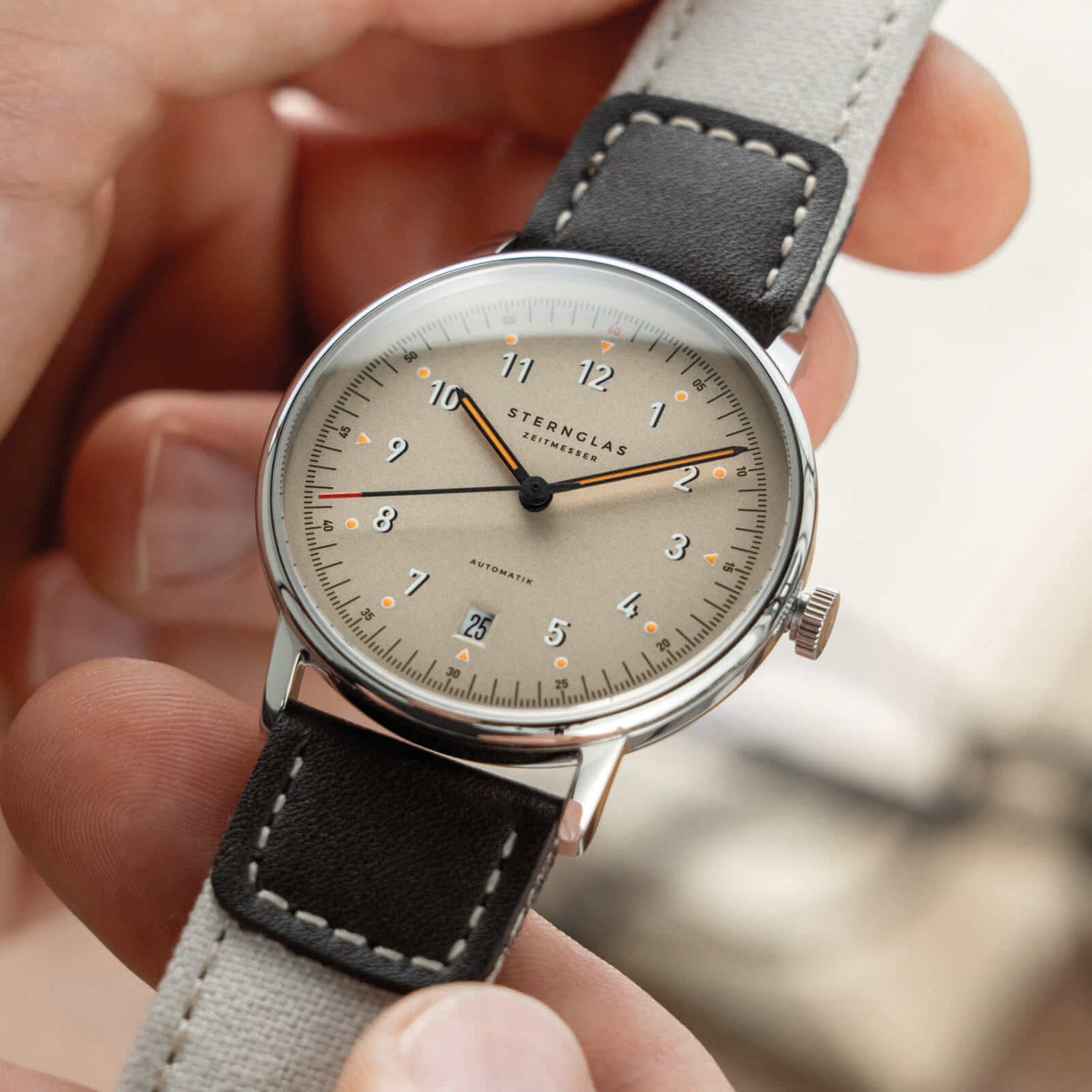 Lichtblick und Blickfang am Handgelenk. Die erste STERNGLAS mit zwei verschiedenen Luminova Farben und Automatikwerk mit bis zu 60 Stunden Gangreserve. Entdecke feine Details wie gebläute Schrauben oder das innovative Nylonband.