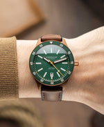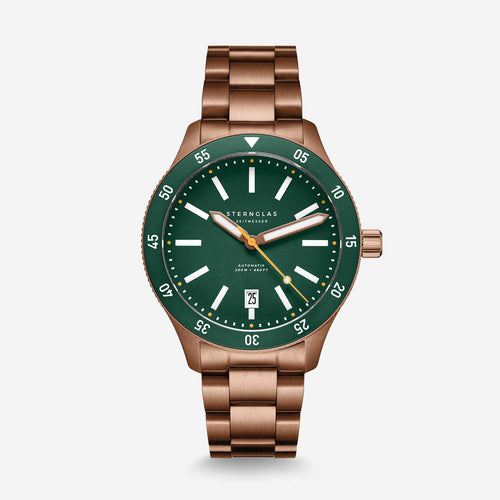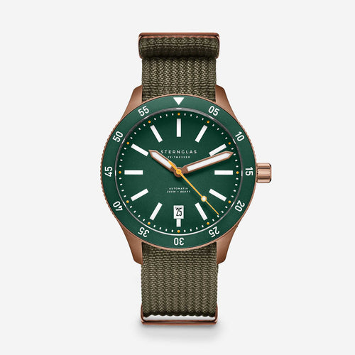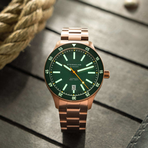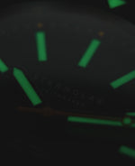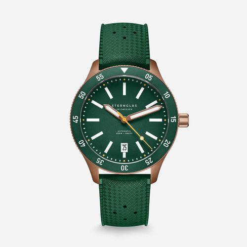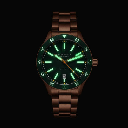 Das Ergebnis: eine Uhr, die bei Tageslicht ebenso überzeugt wie bei Dunkelheit. Ergänzt wird das Zifferblatt durch verlängerte, ebenfalls mit Leuchtmasse belegte Zeiger und einen farblich abgesetzten Sekundenzeiger für präzise Zeitmessung auf den ersten Blick. Die überarbeitete Lünette mit größeren Zahlen lässt sich dank ihrer griffigen Form besonders gut bedienen – auch mit nassen Händen.