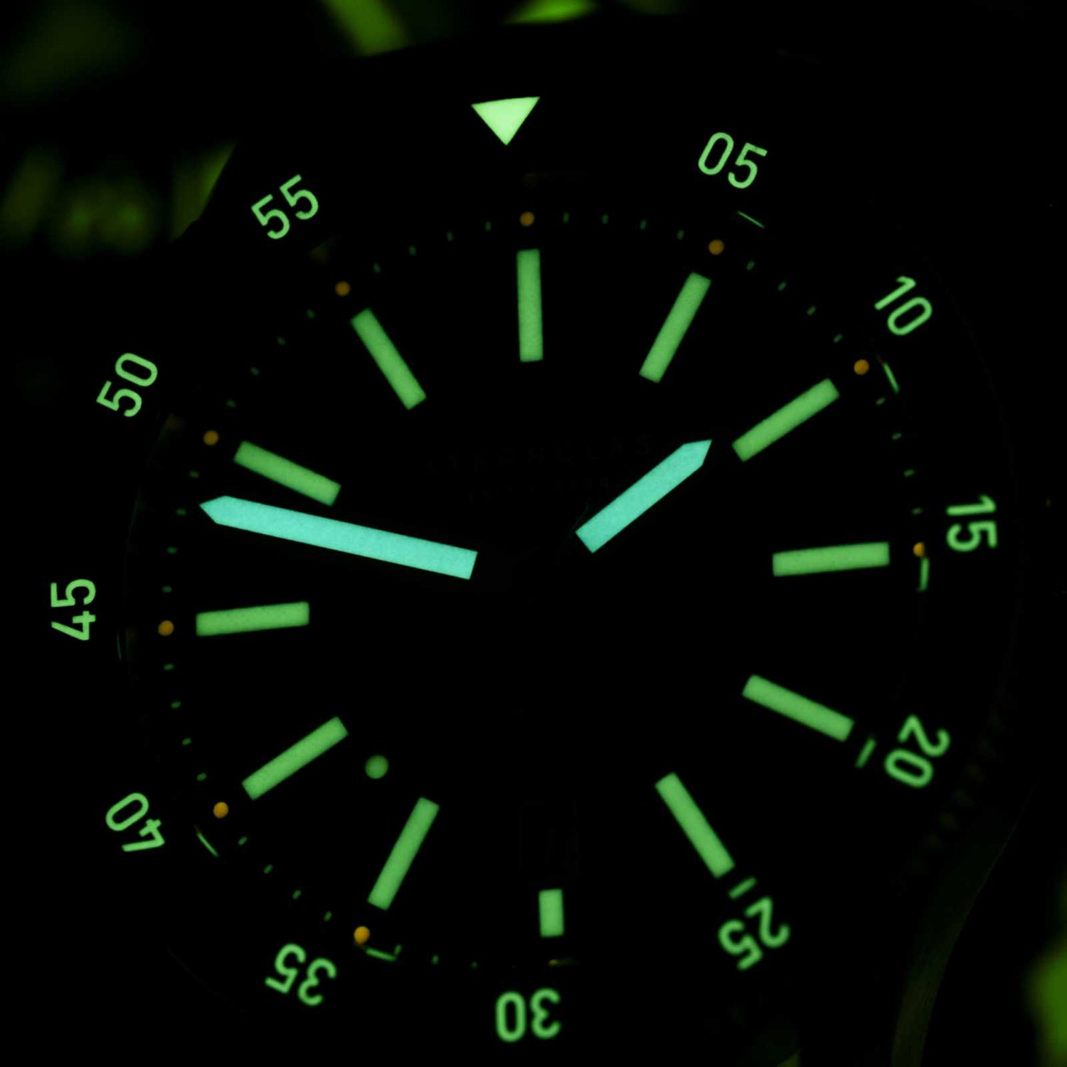 Drehbare Lünette mit Luminova aus Aluminium, verschraubte Krone