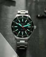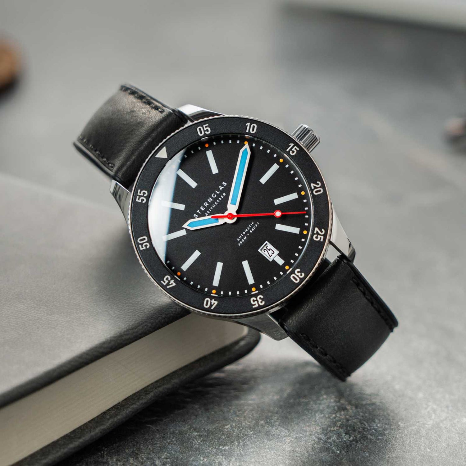 | Zifferblatt | schwarz-rot (nachtleuchtendes Luminova) |