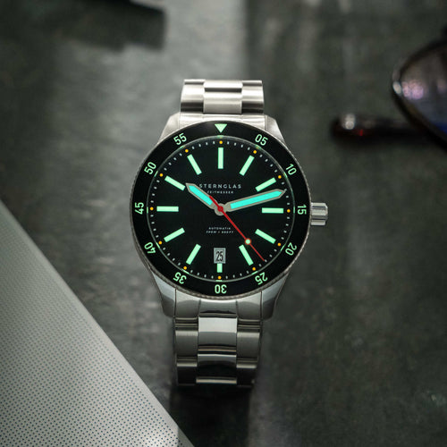 Die Marus 2.0 ist bereit für jedes Wetter. 20 bar Wasserdichtigkeit, Saphirglas und Luminova sorgen für klare Sicht und maximale Alltagstauglichkeit.
