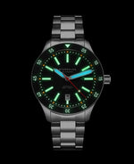 | Besonderheiten | Drehbare, innenliegende Lünette, verschraubte Kronen |