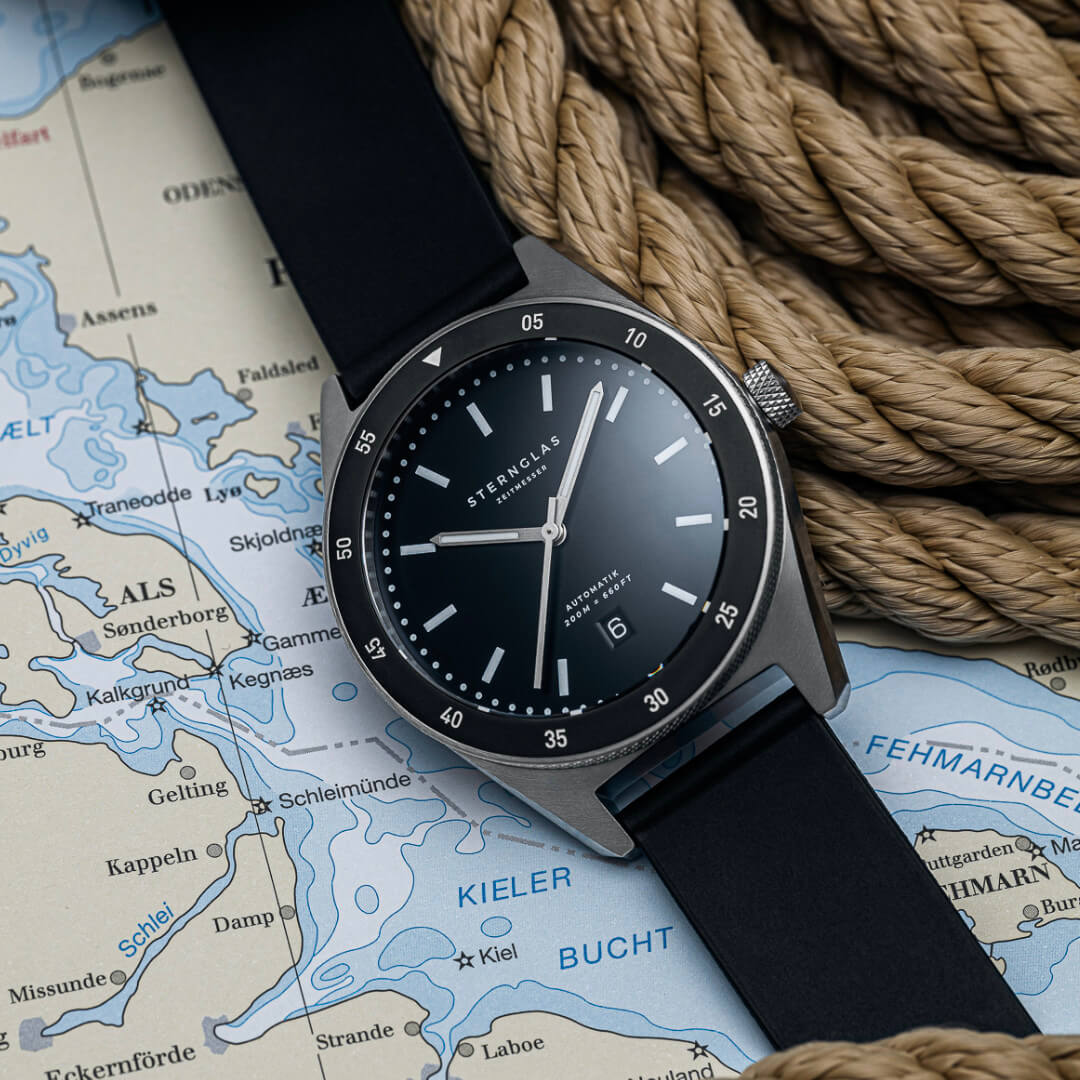 Ein klar gestaltetes Zifferblatt, die drehbare Lünette und eine markante Gehäusekonstruktion machen die Marus zum sportlichen Hingucker.