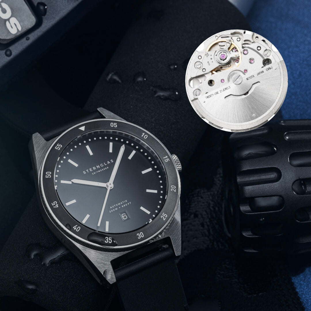 Das Automatik-Uhrwerk des japanischen Herstellers Miyota gilt als besonders wartungsarm und langlebig. Ein Stück echte Uhrmacherkunst.