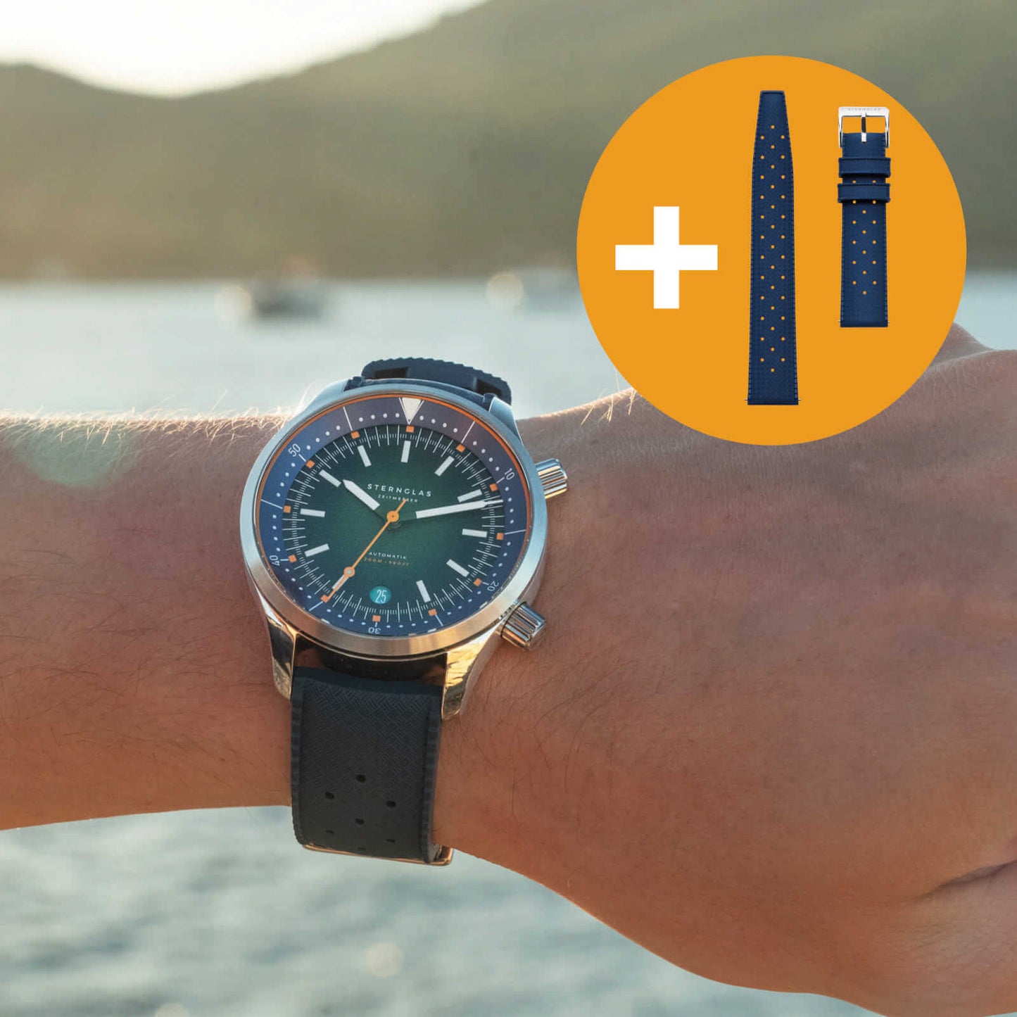 | Zifferblatt | grün-orange (nachtleuchtendes Luminova) |