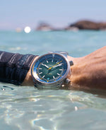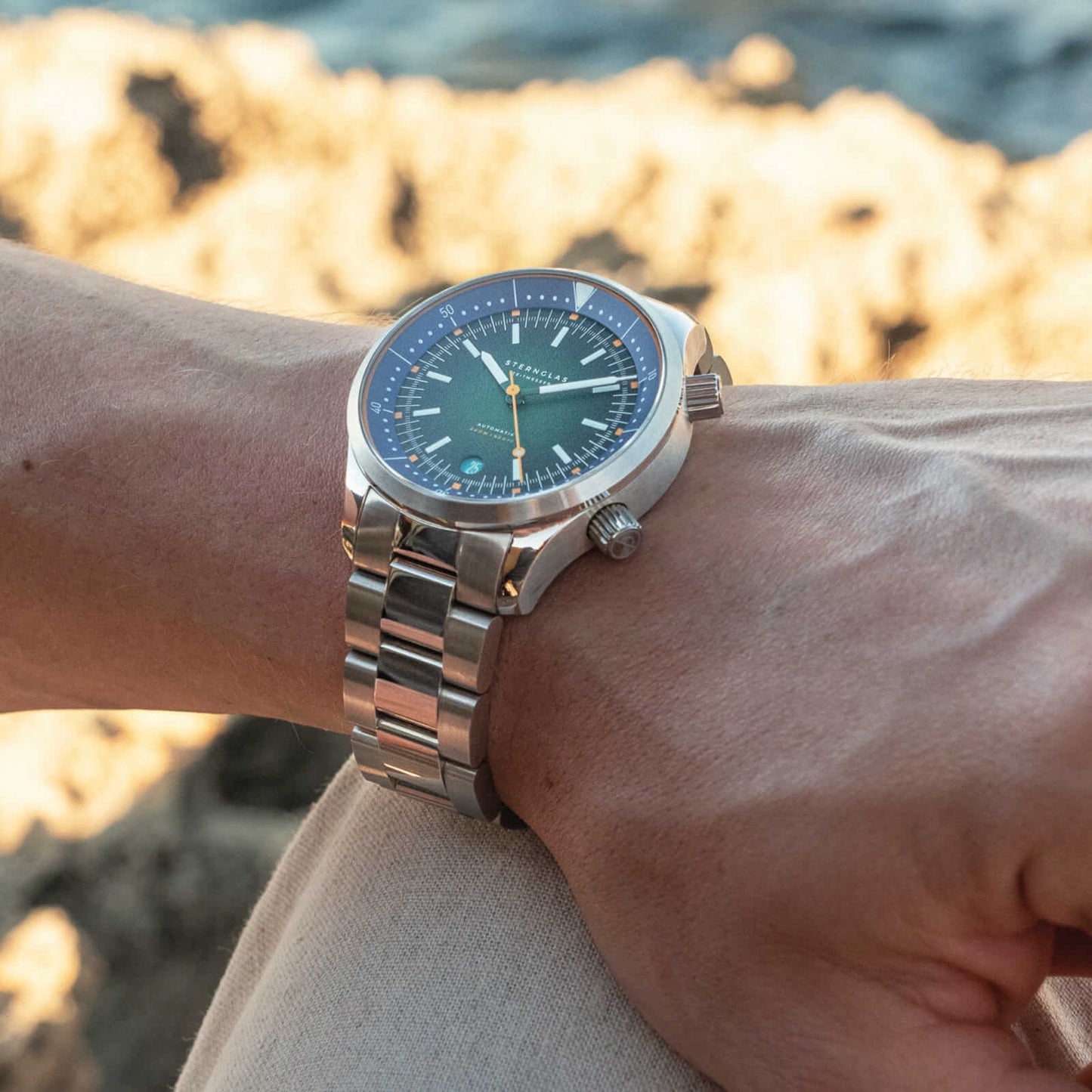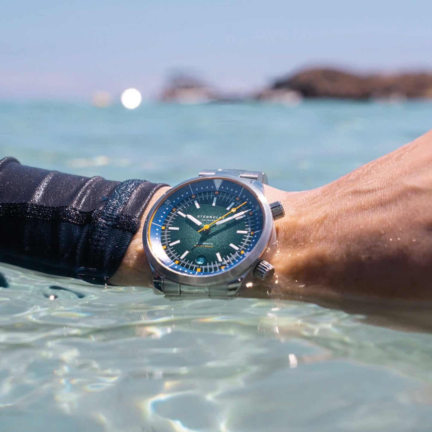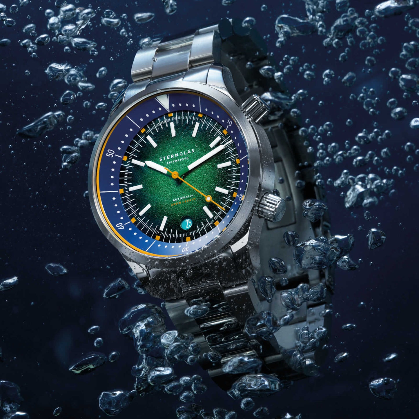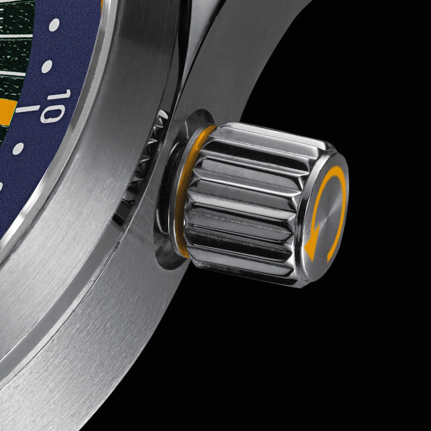 | Besonderheiten | Drehbare, innenliegende Lünette, verschraubte Kronen |
