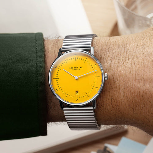 Wir verwenden für unsere Zeitmesser ausschließlich Saphirglas. Das Uhrenglas findet man sonst insbesondere im Luxusuhren-Markt.