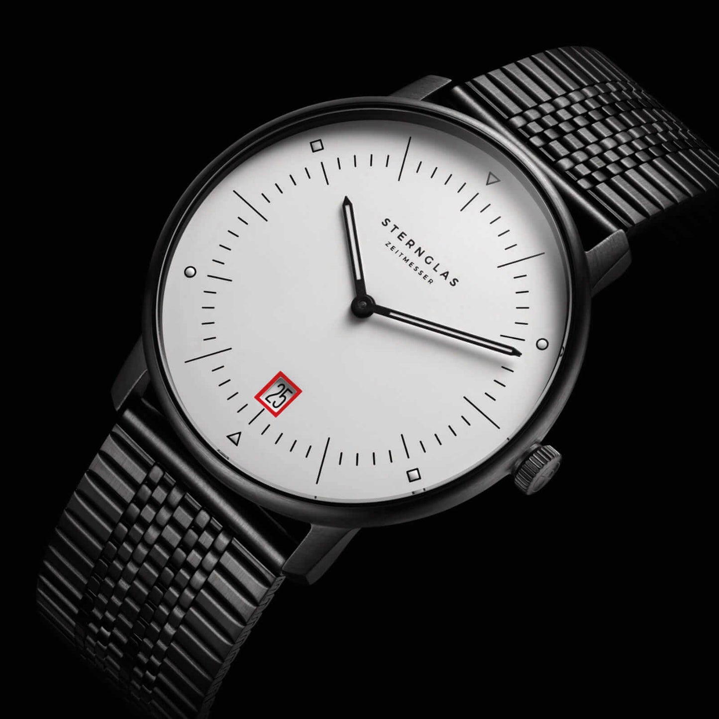 Zeitloser Klassiker als limitierte Sammleredition im Bauhausdesign. Die erste Naos mit Leuchtpunkten. Perfekt ablesbar, auch bei Dunkelheit.