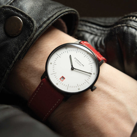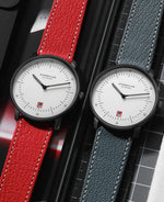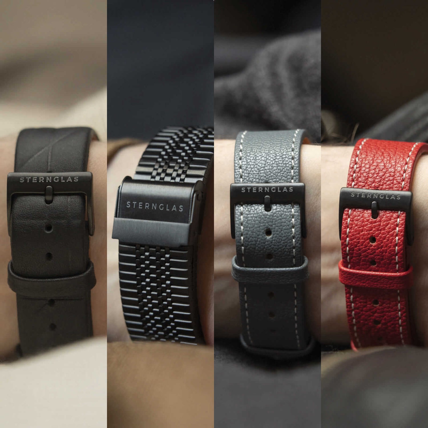 | Armbandvarianten | Editionsarmband schwarz, SuperSlim Metallarmband oder Capra Ziegenlederband hellgrau oder rot |