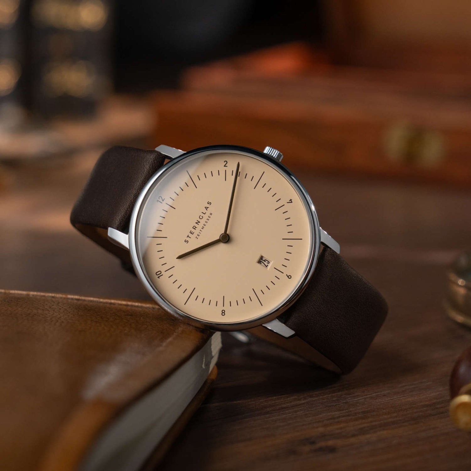 Der stilvolle STERNGLAS Klassiker im minimalistischen Bauhaus-Design. Von geschäftlich bis lässig, von Arbeit bis Freizeit, dieser Zeitmesser passt immer und unter jeden Hemdsärmel.