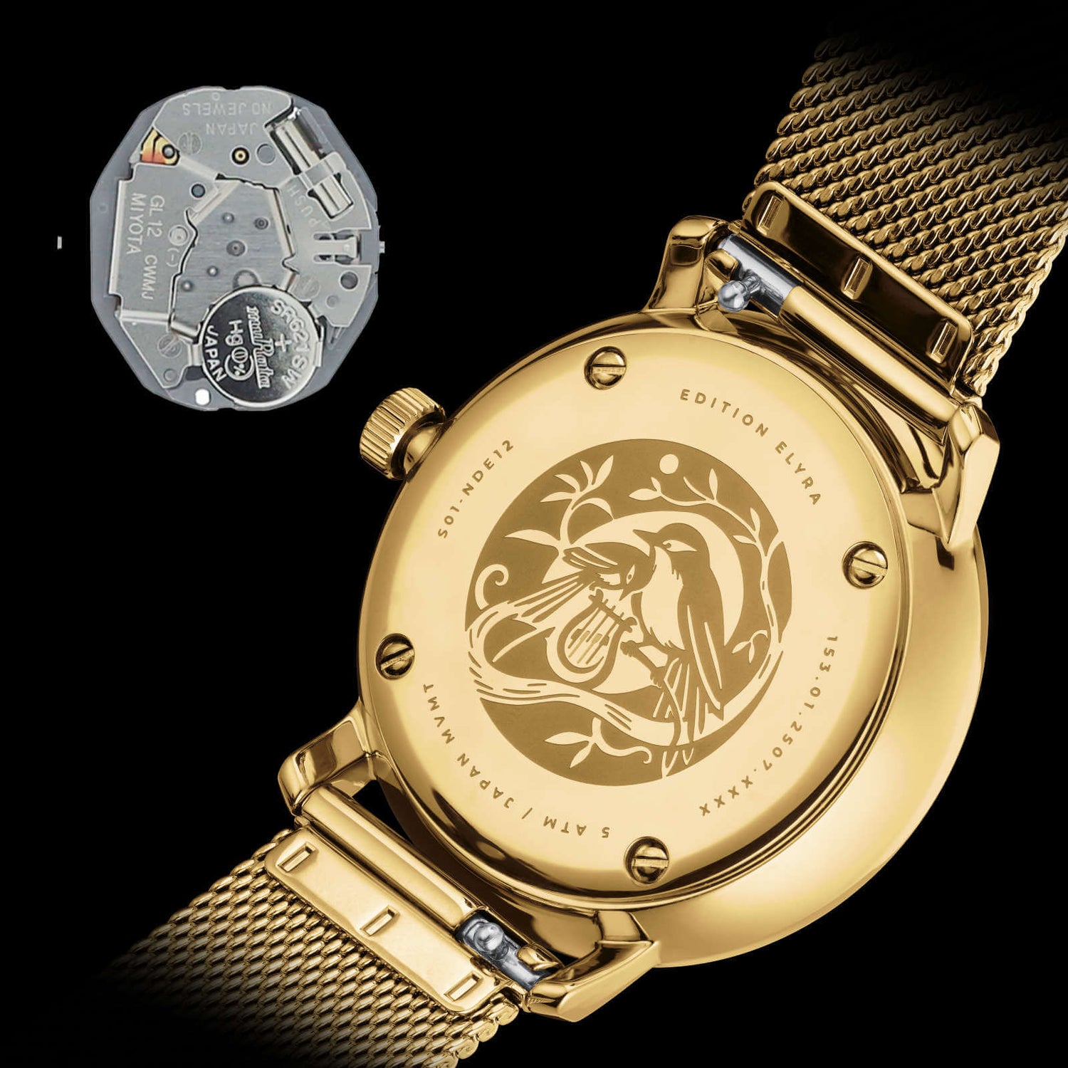 Zeitlose Eleganz in gold. Die Naos XS Edition Elyra vereint feines Design, edle Materialien und symbolische Details zu einem femininen Klassiker.