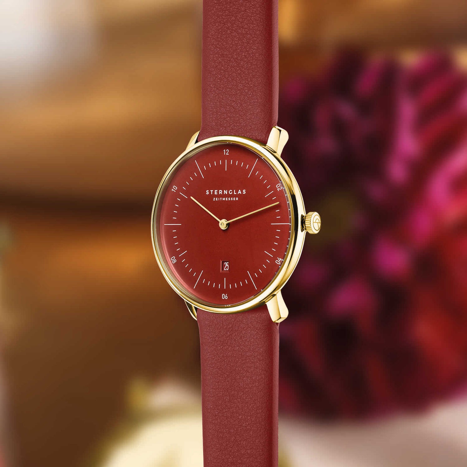 | Armband | Klassik 16 hibiskus, rot, echtes Kalbsleder |