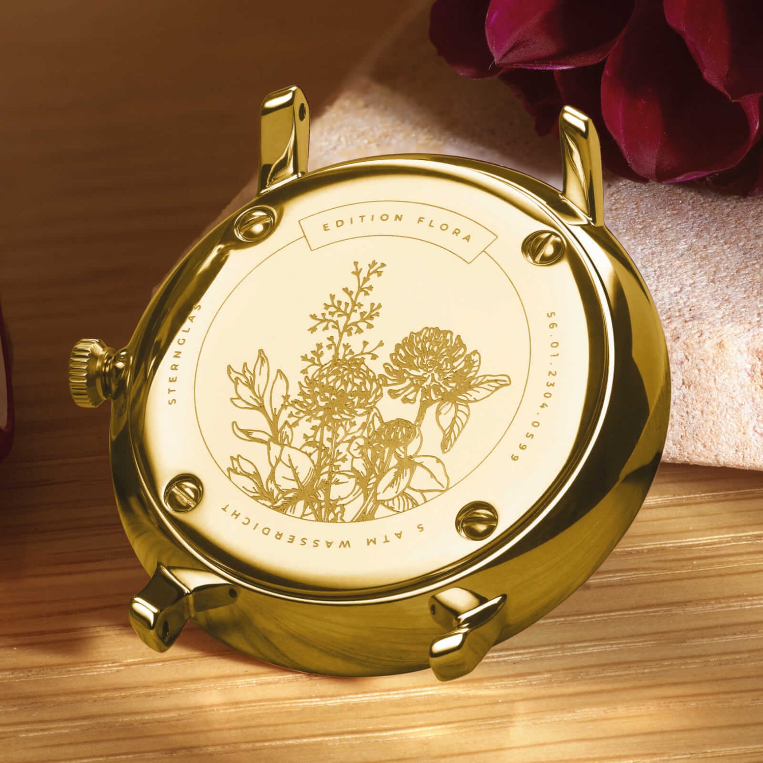 | Gehäusematerial | 316L Edelstahl, PVD champagnergold, poliert |