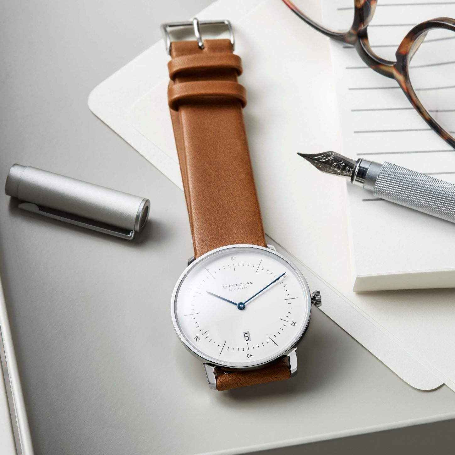 Das Premium-Armband beziehen wir von einem Familienbetrieb im Bayerischen Wald. Samtweiches Kalbsleder und die herausragende Verarbeitungsqualität ermöglichen ein spürbar angenehmes Tragefühl. Das Schnellwechselsystem ermöglicht einen mühelosen Armbandwechsel in Sekunde – ganz ohne Werkzeug.